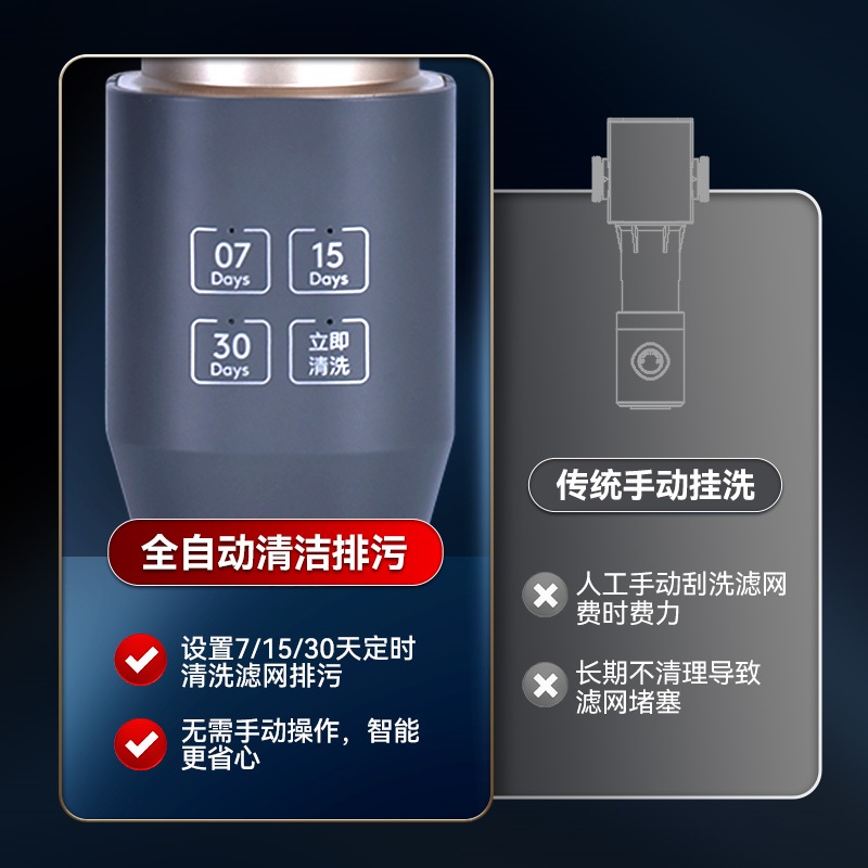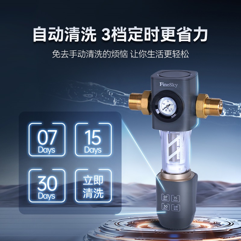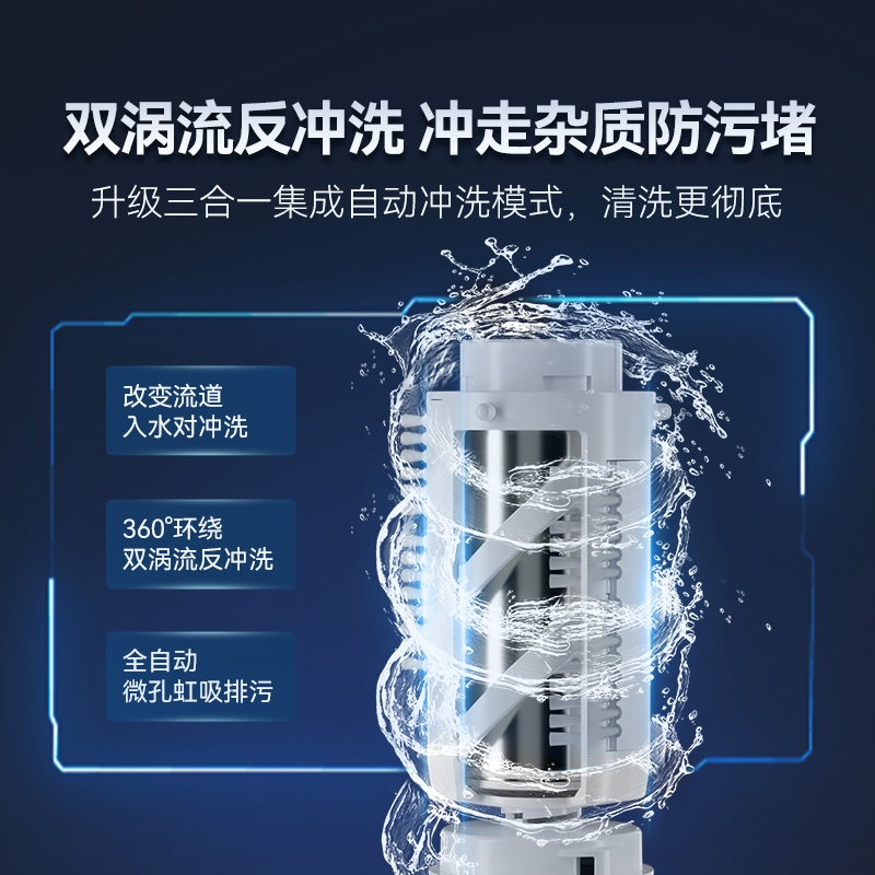 龍卷式深層清潔 反沖洗+雙面毛刷 40μm精密過濾 可視水壓表盤 316不銹鋼濾網(wǎng)終生免換,免拆洗 高分子航空級(jí)高韌性防爆濾瓶 6.5T/H澎湃大流量 H62+低鉛環(huán)保銅